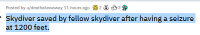 Я сам эпилептик. Срань господня! Всегда хотел прыгнуть с парашютом. Сейчас я просто в ужасе. Парню невероятно повезло.
