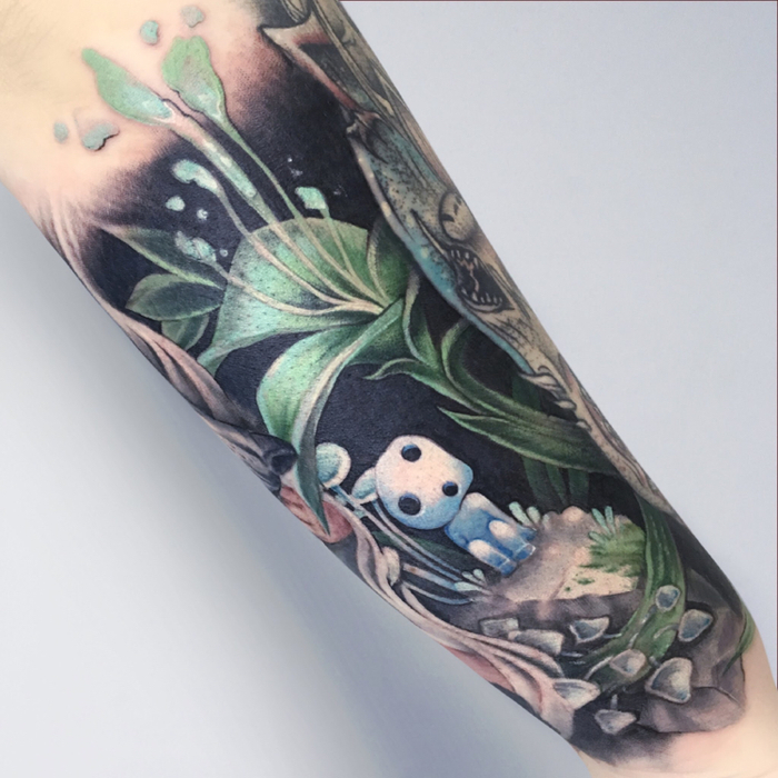 Сегодня он делает очень крутые татуировки без художественного образования. При этом он систематически ходит рисовать в мастерскую к преподавателю и посещает конвенции, где смотрит на работы профессионалов.