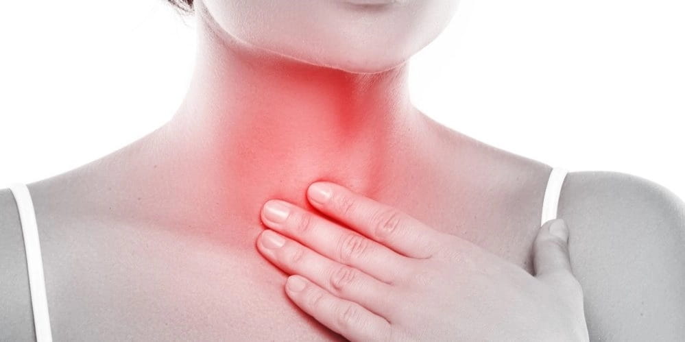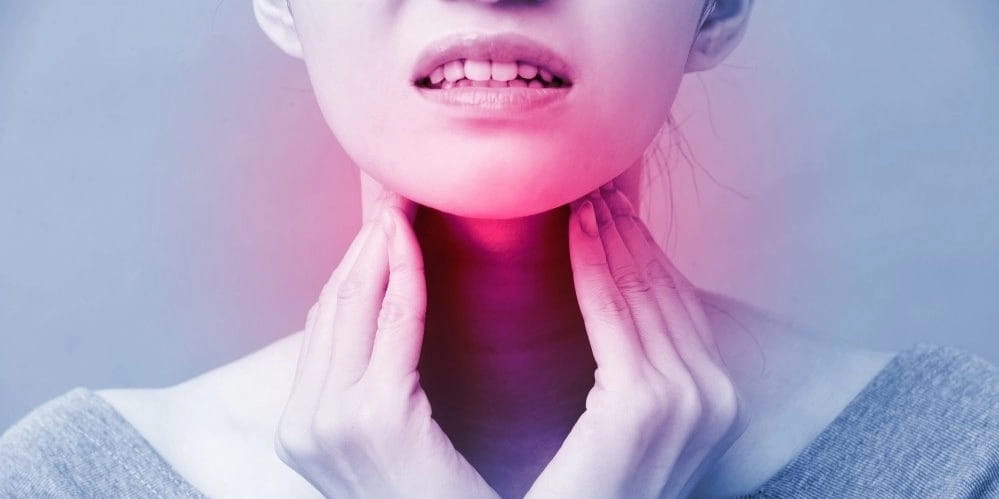 Боль в горле – одна из причин появления дискомфорта, проявляющегося в области расположения щитовидной железе. Ее могут спровоцировать воспалительные процессы или формирование новообразования различной этиологии. Заболевания горла или трахеи обычно сопровождаются повышенной температурой с проявлением интоксикации, болезненность отдает в уши. Покраснение в носоглотке, белый налет на миндалинах и их увеличение явно указывают, что боль вызвана не патологическими изменениями в эндокринном органе, хотя распространяется и на зону его расположения.