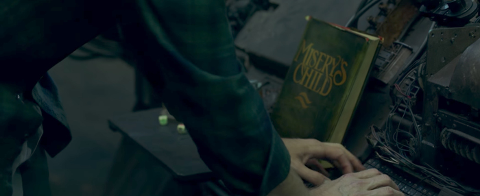 В сцене с Человеком в черном мы видим книгу "Misery's child".