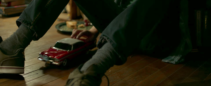 Машинка, с которой играет Джейк в своей комнате — это уменьшенная модель 1958 Plymouth Fury красного цвета.