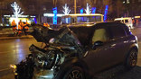 Видимо, водитель не справился с управлением или машину занесло на обледеневшей под вечер дороге, и Mercedes врезался в блоки, на разделительной полосе, задел иномарку, после чего лоб в лоб столкнулся с микроавтобусом.
