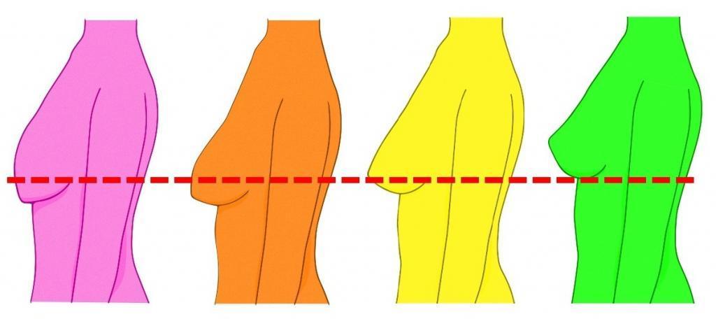 Помимо соотношения железистой и жировой ткани, на степень отвисания груди при похудении влияет также форма бюста. Менее всего подвержена изменениям невысокая грудь с широким основанием.