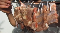 Также в воду добавляют яблочный уксус. Проваривается мясо в течение 60 минут, после чего охлаждаются вместе с жидкостью и помещаются в холодильник на 24 часа. По истечении указанного срока ребрышки подсушиваются и отправляются в коптильню.