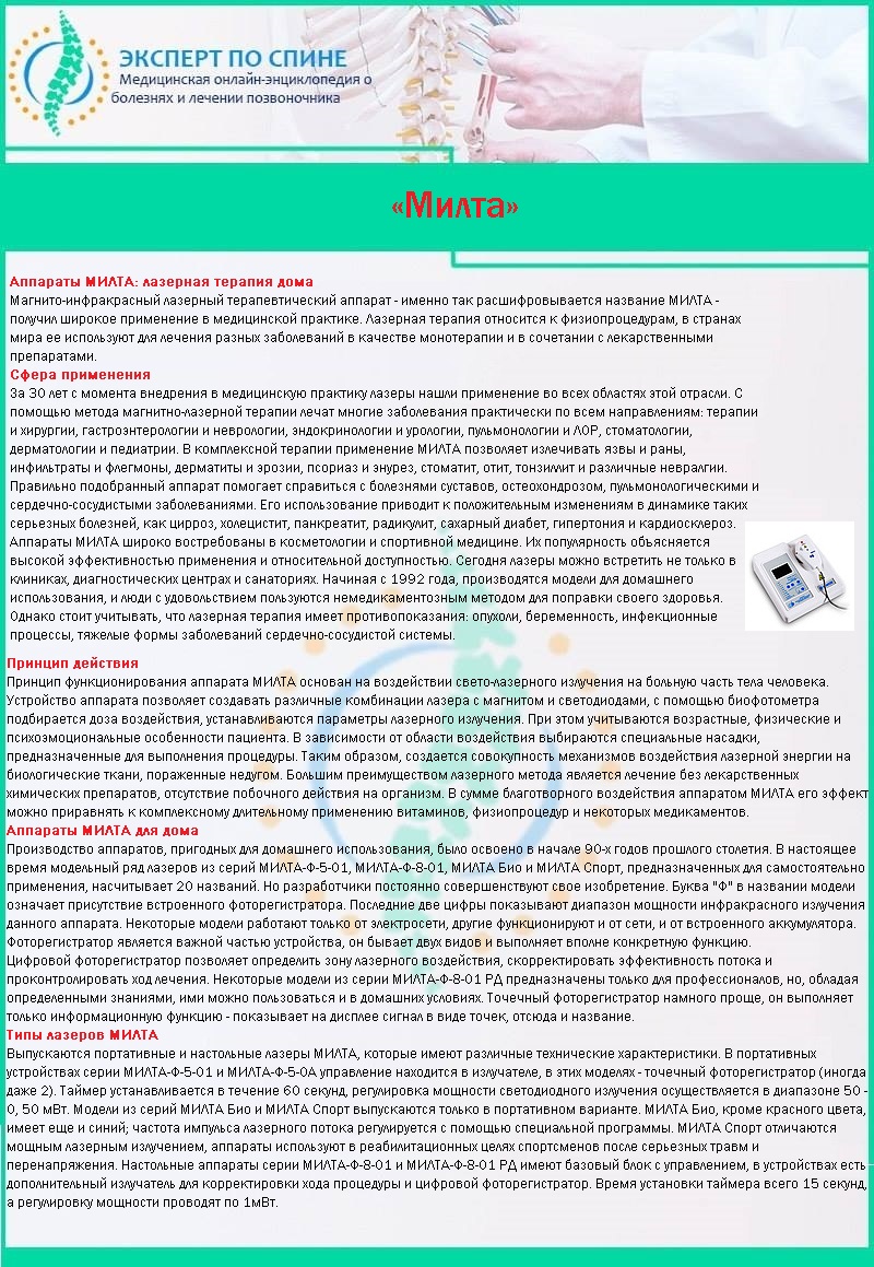 Юрий, 30 лет: Я по образованию физик и не понаслышке понимаю принцип действия лазера. Его лучи проникнут туда, куда не доберется ни одна мазь. Поэтому, когда прихватил остеохондроз поясничного отдела (от сидячей работы), я пошел в магазин и купил домашний аппарат Ореон 5, узнал, какие точки надо светить (избегать область почек) и начал лечение. Боли ушли после первой же недели, через 3 месяца я забыл, чем и когда болел!