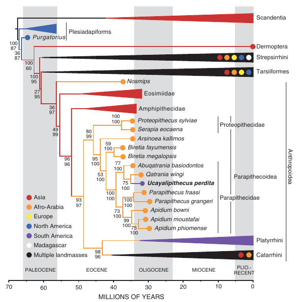 Оказалось, что зубы укаялипитека по форме ближе к зубам парапитековых обезьян, чем к зубам широконосых. Парапитековых часто рассматривают как сестринскую группу по отношению к широконосым и узконосым обезьянам. Если Ucayalipithecus perditaдействительно входит в семейство Parapithecidae, получается, что в Южную Америку из Африки примерно 35 миллионов лет назад мигрировали две группы обезьян, а не одна, как считалось раньше.