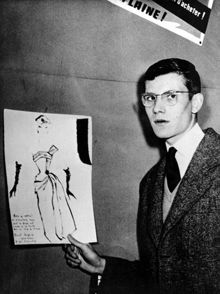 В 1955-м, во время одной из встреч с де Брунофф, Сен-Лоран показывает ему свои эскизы. И тот, пораженный сходством моделей с дизайном новой коллекции Кристиана Диора, которую он видел этим утром в кабинете легендарного кутюрье, решает познакомить его с творчеством молодого художника.