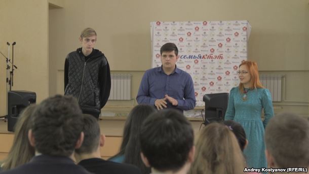 проводят тренинг о ВИЧ и СПИДе для студентов первого курса Казанского торгово-экономического техникума.