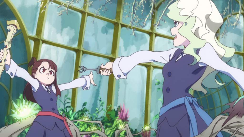- Выросшая в семье обычных людей Акко почти ничего не знает о мире ведьм, но ее увлечение коллекционными картами с Чариот нередко ей помогает, потому что на них описаны различные магические вещи, о некоторых обычные ведьмы успели забыть.