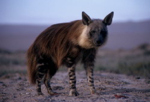 Это Бурая (или Береговая) гиена, обитательница прибрежных зон и пустынь центральный Африки. В отличие от своей ближайшей родственницы и соседки - Пятнистой гиены - она преимущественно падальщик, меньше, слабее её и посмотреть поближе на туристов не стремится. Да и у людей, надо сказать, она не так популярна - Пикабу не имеет для неё тега, а Ютуб не выдаёт милые видео решивших завести себе такую.