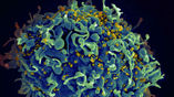 Лучше любого другого доказательства: ВИЧ (отмечен жёлтым цветом) заражает иммунную клетку.