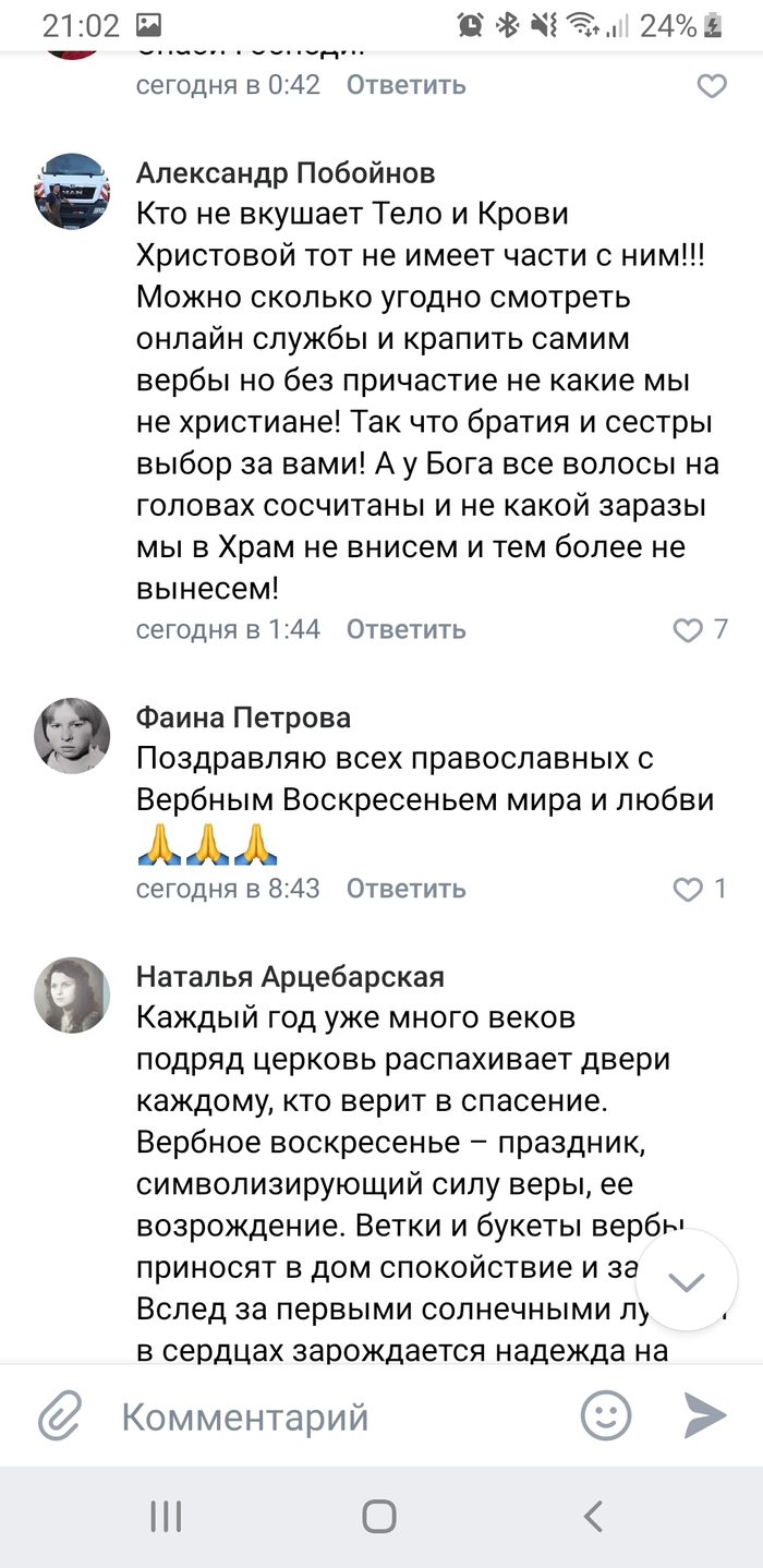 Общая и официальная позиция РПЦ - в храмах обходиться только силами духовенства и, если обряд провести нельзя, то минимальным количеством помощников из мирян. Куча рекомендаций как им самим провести обряд освящения верб и всякие молитвы, чтобы дома читать. Интервью с церковными деятелями, которые осуждают священников, игнорирующих угрозу коронавируса.