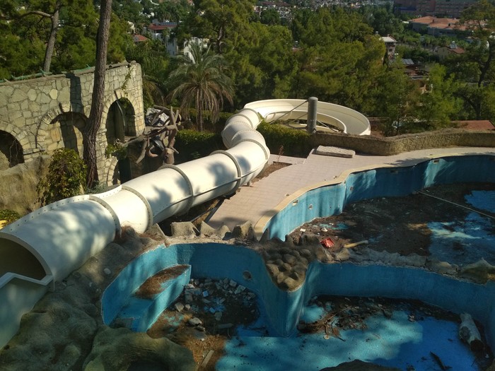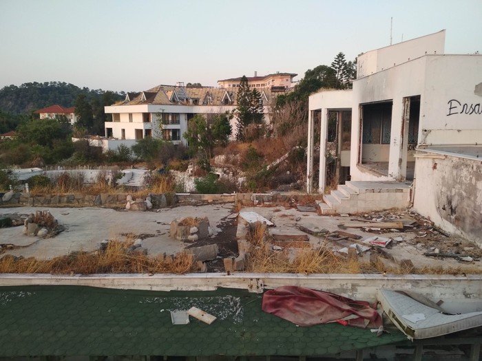 Ездили в Турцию с сыном в августе. В деревушке Чамьюве обнаружили комплекс заброшенных отелей. Располагается на большом холме. Занимает очень немаленькую территорию.