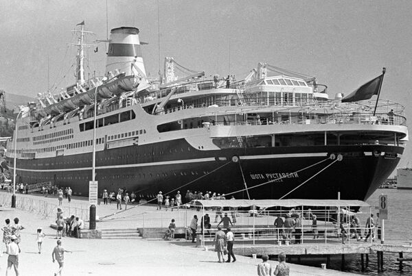 Советский теплоход "Шота Руставели" у причала в Ялтинском пассажирском порту