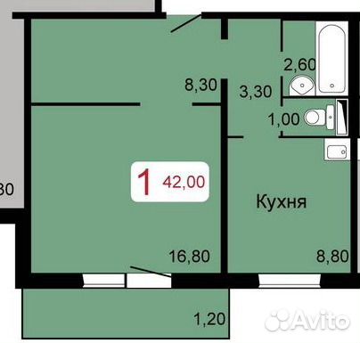 Однокомнатная квартира, 42 м 2 , 7/10 этаж