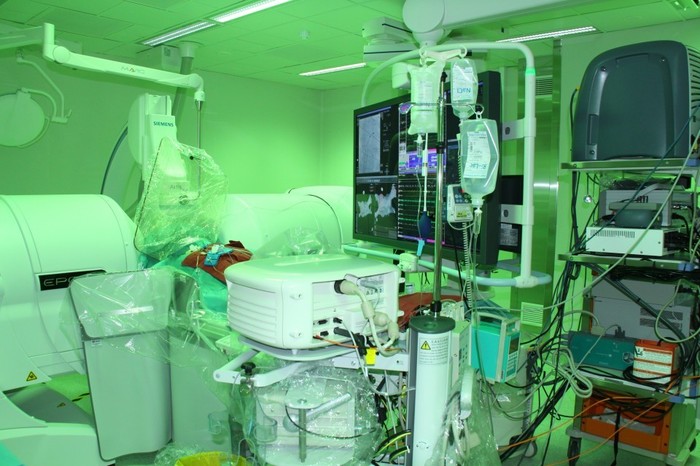 Оборудование я толком не рассмотрела - повезли без очков. Видела монитор диагональю около 1.20 метра, какие-то хитрые установки, и надо мной висел по всей видимости рентгеновский аппарат, потому что с помощью него следят за продвижением катетеров.