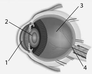 2. Какой цифрой на рисунке обозначен элемент глазного яблока, выполняющий функцию фокусировки световых лучей?