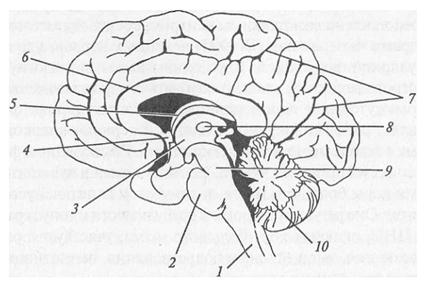 2 – продолговатый мозг;
