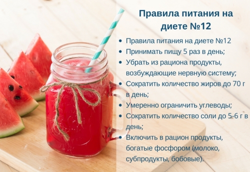 Стол №12 показан при функциональных заболеваниях нервной системы.