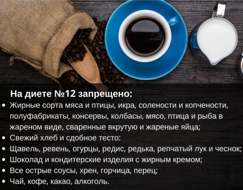 Все ограничения на диете №12 касаются продуктов и блюд, которые возбуждают нервную систему: