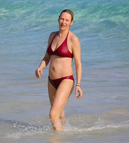 Интеллектуалка и просто отличная актриса Ума Турман тоже позволяет себе иногда быть собой. Небольшой животик даже красит звезду. Она и так всегда была слишком худой и угловатой! Неужели, нельзя простить ей несколько лишних килограммов?