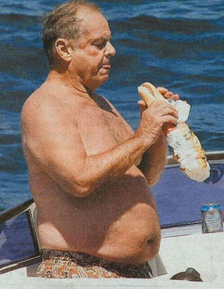 Легендарный Джек Николсон блистал в сотне фильмов, покоряя женщин своим дьявольским взглядом и подтянутым телом. Но недавно общественность имела шанс лицезреть фотографии, на которых кумир миллионов вальяжно нежиться на яхте в компании с сэндвичем и огромным животом.