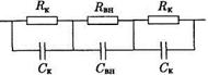 Рис. Эквивалентная электрическая схема тела между двумя касаниями (электродами)