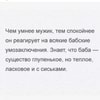 Есть мнение, что 80% семейного счастья зависит от женщины. Так, значит, мы держатели "контрольного пакета акций" - что хотим, то и делаем!