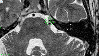 Кроме клинико-неврологического обследования, применялось МРТ задней черепной ямки, в Т2 режиме, 1.5 тесла с шириной шага 1 мм. Помимо визуализации нервно-васкулярного конфликта, МРТ проводилась с целью исключения другой патологии головного мозга.