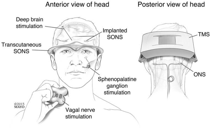 Изначально метод был разработан для лечению эпилепсии. Сейчас проходит испытания для лечения кластерных головных болей и мигрени.