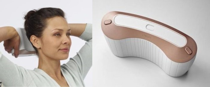 Стильный неинвазивный прибор, стимулирующий нервы, выходящие из черепа в районе бровей.