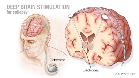 Суть: в мозг вставляют стержень, на конце стержня - электроды, которые соприкасаются с гипоталамусом. К другому концу стержня подключаются провода от генератора, вшитого под кожу под ключицей. Генератор включается по расписанию, выполняя профилактическую роль.