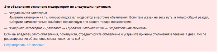 Ну думаю окей, изменю категорию на "нужную", как на скрине выше. И тут для меня начинает вырисовываться полная картина: для опубликования объявления по указанной администратором сайта категории, необходимо заплатить 766 рублей. Ну в общем, теперь, я думаю, всем стало понятно зачем и почему моё объявление блокировалось))