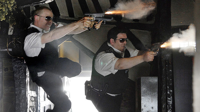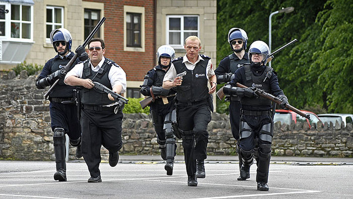 Съёмки стартовали 19 марта 2006 года и продлились одиннадцать недель. Создатели начали с лондонской студии, а через пять недель отправились прямиком в Уэллс. Городок очень небольшой, и не заметить съёмки местные не могли. Потому, перед тем как включить камеры, создатели встретились с уэллсцами и рассказали о своём фильме. Местные были только рады стать частью массовки и никто не был против, что городок на время заполонят киношники, всё перекроют и будут устраивать перестрелки рядом с историческим фонтаном в центре города. Кстати, фонтан и рыночную площадь Эдгар Райт использовал по-максимуму, постоянно меняя ракурсы. Добрая половина уличных сцен была снята именно здесь.