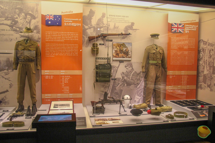 Войскам ООН посвящен отдельный зал. Со стендами стран участниц, которые принимали участие в войне на стороне Южной Кореи.