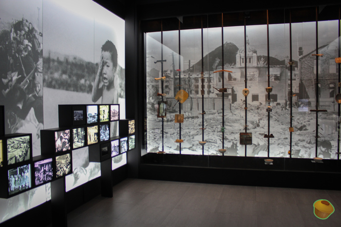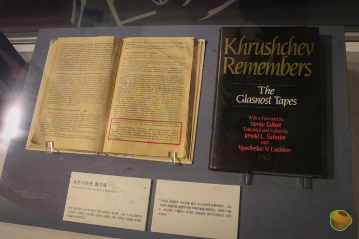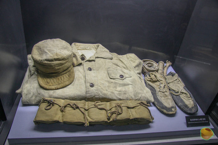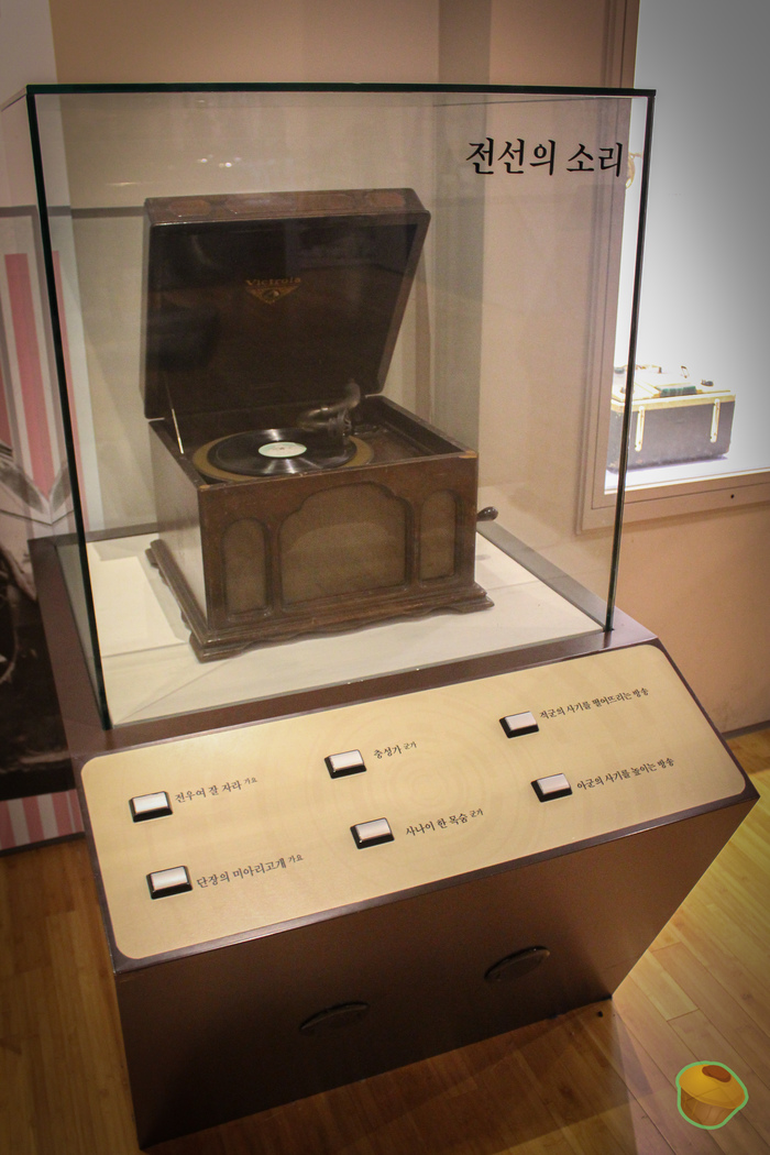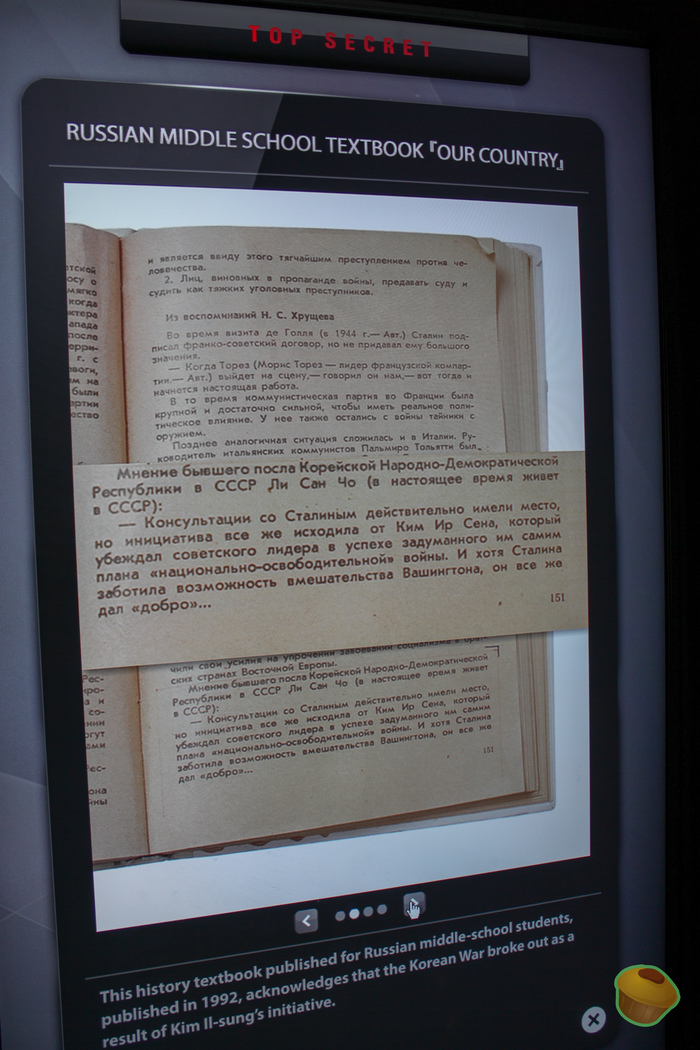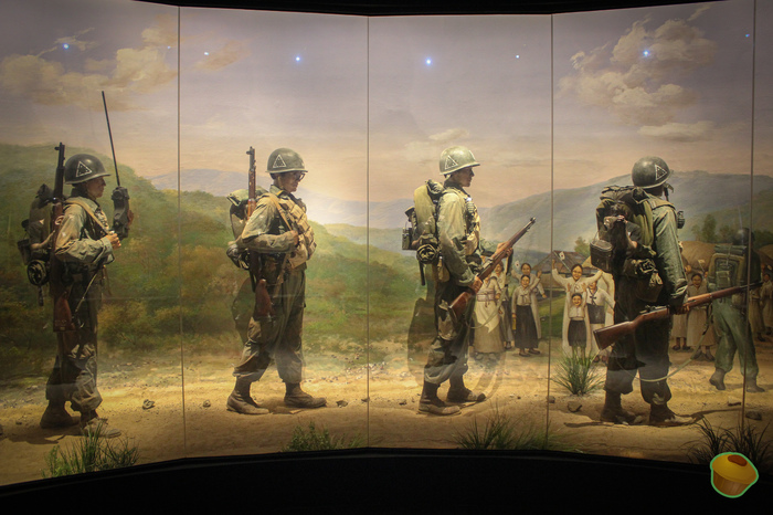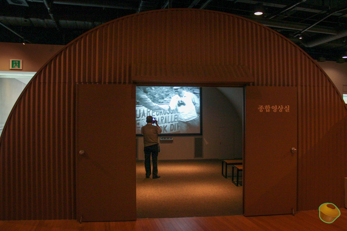 Вообще довольно много мультимедийной части. В некоторых залах слышны звуки взрывов, сирена, перестрелки, крики на корейском. Можно послушать песни тех лет.