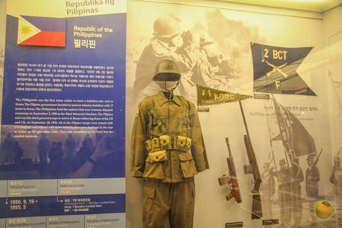 Есть стенды с описанием вклада южнокорейских родов войск.