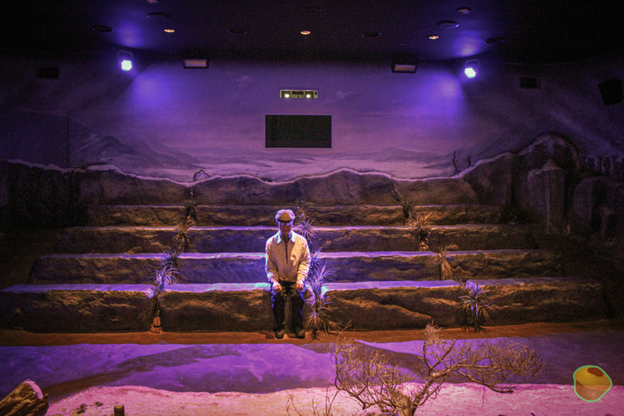 Еще один кинотеатр. Где повествование ведется от имени ветерана, который тут же сидит на лавочке в первом ряду. На экране кадры кинохроники, когда зрителю показывают зиму, в зале начинает идти искусственный снег.