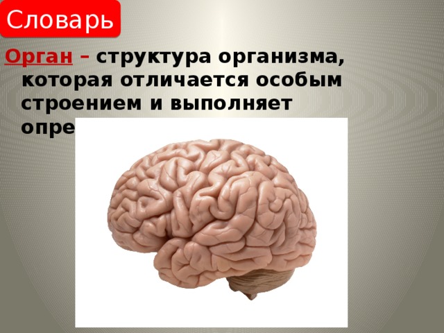 Орган – структура организма, которая отличается особым строением и выполняет определенные функции.