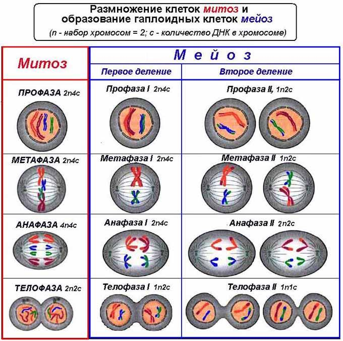 Здесь поможет понимание или заучивание формул митоза и мейоза: