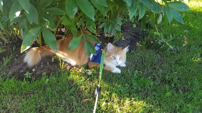 Давно и долго живём в частном доме. Какой дом без кота? Но не так всё просто. Первым был приблудыш Буся. Рос, вырос, через полтора года пропал. Потом был взятый по объявлению Тоша. Рос, рос, вырос, загнил зуб, наркоз, операция, умерла печень, умер кот. Потом был Марс. Взятый из деревни, мощный котяра. Рос, рос, через год приполз домой с перебитыми задними лапами, клиники, операции, бинты, уколы. Через полгода ушёл, не вернулся. Потом был Барся. Тоже взяли по объявлению о пристройстве котёнка. Рос, рос, гулял, любимец соседей, всехный друг, по достижению полутора лет, найден мёртвым, со свёрнутой шеей, на лугу, напротив дома. Почти 2 года назад, маменька притащила домой маленький рыжий комочек, пытались назвать Гарфилдом, оказалось, просто Филя. Теперь гуляем на поводке. Всегда. Кота жалко, но жалко, поэтому, на поводке.