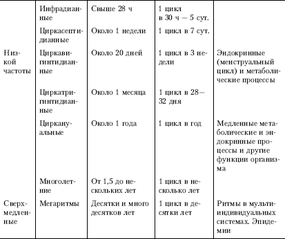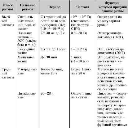 Таблица 2.5.Классификация ритмической активности организма и основные свойства ритмов (по: И. Е. Оранский, 1988)