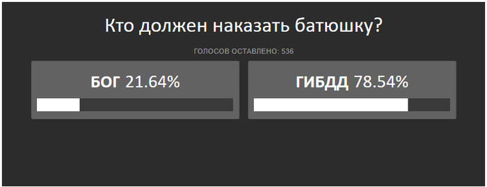 Тогда издание спросило у горожан, кто же должен наказать батюшку: Бог или ГИБДД. Большинство читателей проголосовало за второй вариант ответа.