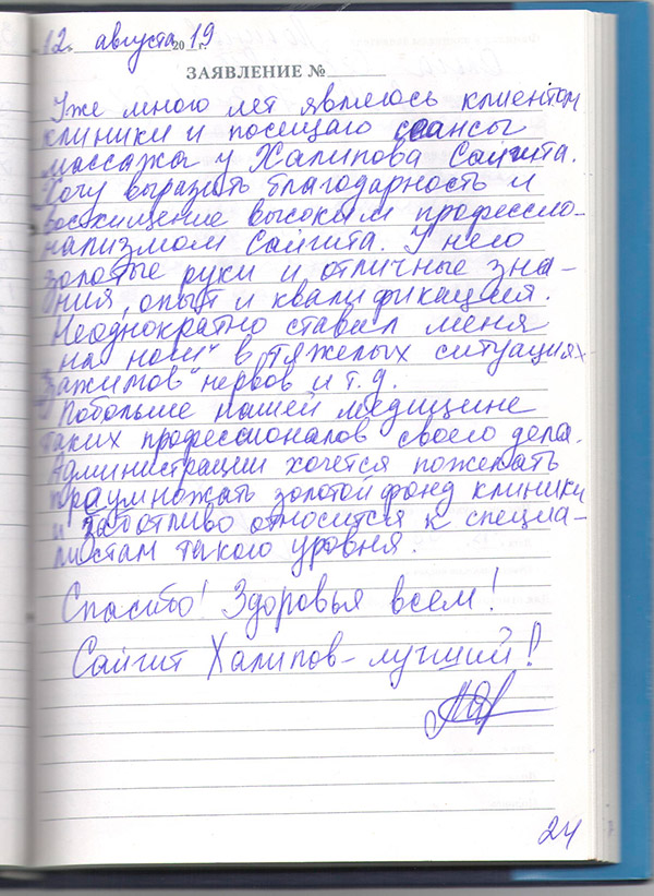 Хочу сказать спасибо Старикову Сергею Михайловичу (мануальный терапевт, к.м.н., гл.врач клиники) за обезболивание с первого сеанса. Впервые я себя почувствовала в безопасности на приёме такого специалиста. Этот врач знает, что делает. Смело рекомендую.