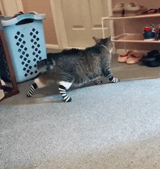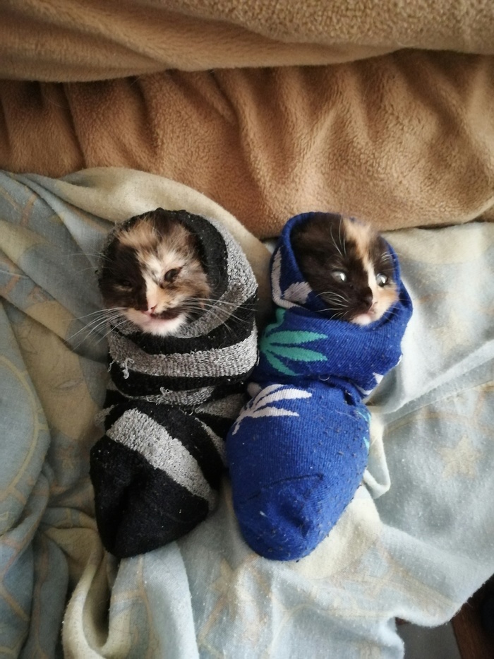 Тоша (главный герой этой истории и соответственно мой молодой человек) жуткий любитель Доты. И если его кто-то отвлекает, мама не горюй, Царь Батюшка начинает злиться, что к добру не приводит. Ну и в очередной выходноой его величество село играть в доту. Лохматым, конечно, всё ни по чем и они пошли штурмом атаковать системный блок. Изначально они нахрен отрубили ему инет, а потом ещё 2 раза отключили компьютер. Тут то нервы моего суженого сошли на нет. Он приспокойно взял мои носки и расфосовал 2-ое пушистых по носкам. Третий видать понял, чем дело пахнет и дал по газам (нашли его потом только спустя пару часов). Мама дорогая, это надо было видеть. Положил их к себе на колени и сел играть.