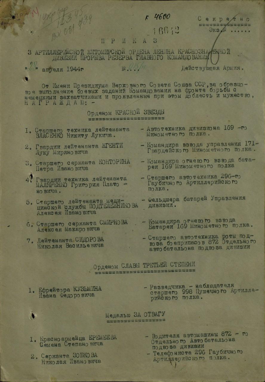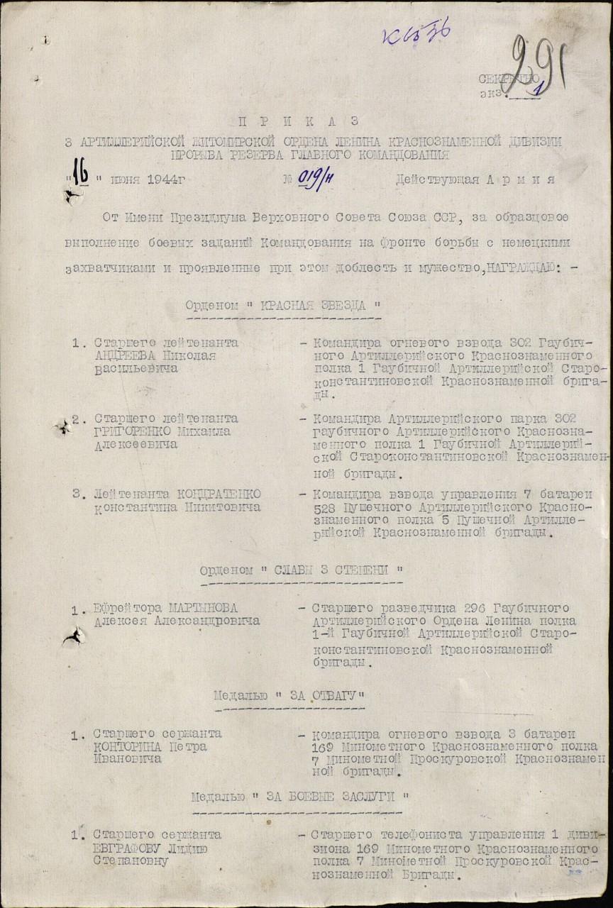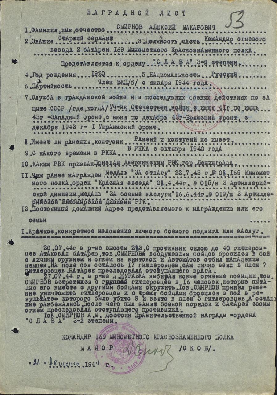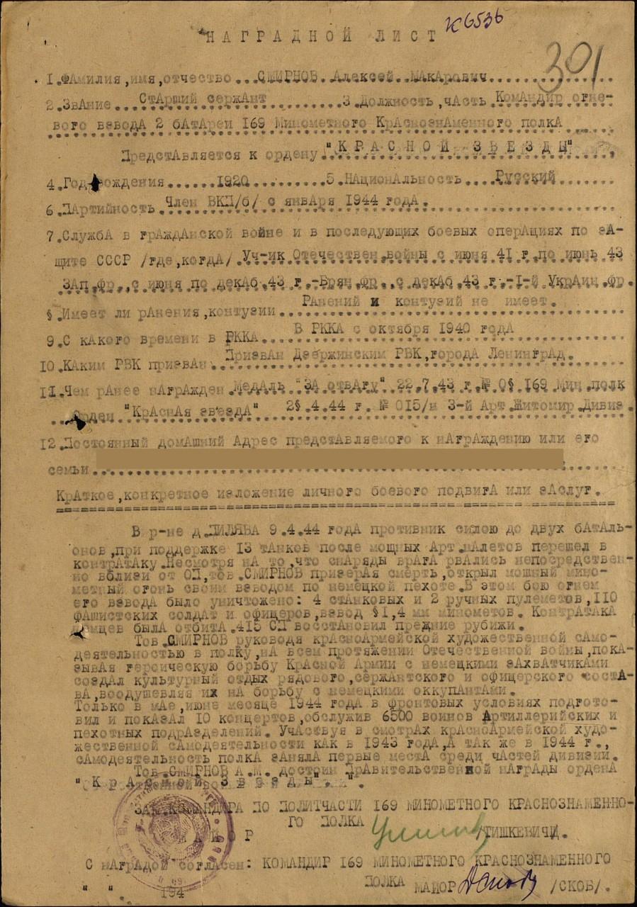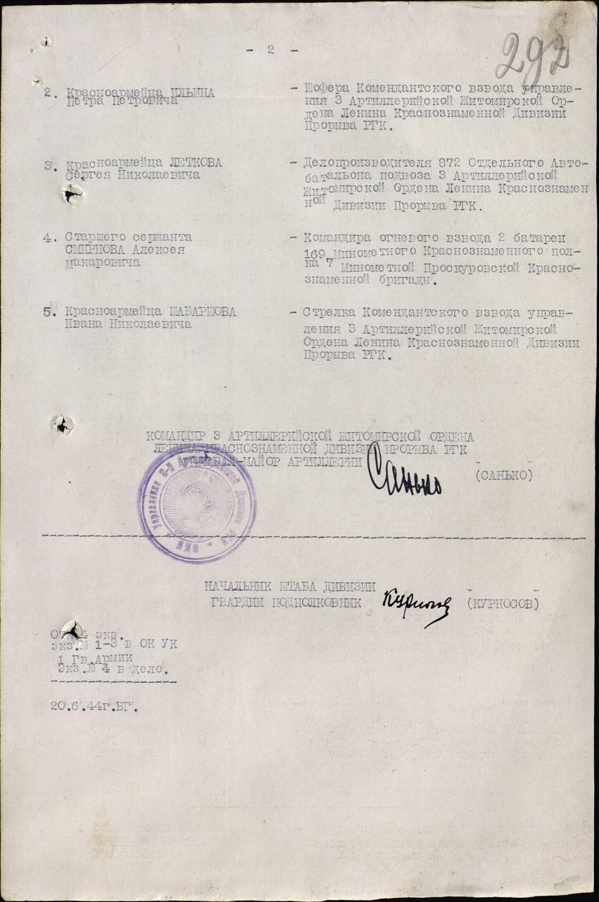 Приказ о награждении к нему (1 страница основная, на 2-й странице наш герой):