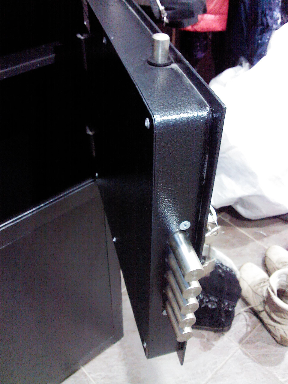 Замки на сейфах должны иметь ригельную систему запирания. Ригели — это металлические толстые цилиндры диаметром от 20 мм. Во взломостойких сейфах они прокручиваются при попытке спиливания. Сам замок может быть трех типов: