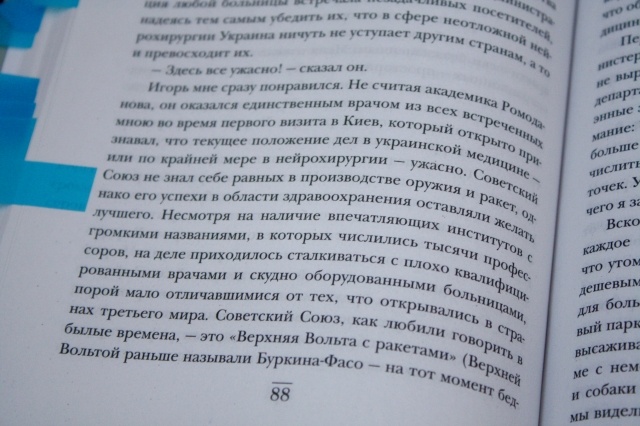 Генри Марш посетил Россию и Украину после распада СССР. Было интересно и жутко читать не самые приятные воспоминания Марша о происходящем в странах, смотреть на все его глазами. А самое страшное, что мало что изменилось с тех пор, особенно, если говорить о медицине.