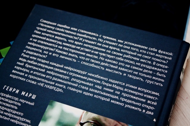 С Вами бывает такое, что вы видите обложку, читаете аннотацию книги и сразу понимаете - "мое"? Я слежу за новинками в мире литературы и о книге Генри Марша "Не навреди" узнала сразу же после ее выхода в свет. Ходила вокруг да около, сомневалась и все-таки решила подождать отзывов, несмотря на зацепившую меня аннотацию. Причина одна - мне не хотелось читать научпоп о строении мозга, вдаваться в анатомические подробности. Мне, безусловно, это очень интересно, как и вся медицина в целом, но так хотелось прочитать истории из жизни, откровения врача, хотелось понять, что чувствует человек, от действий которого зависит здоровье и жизнь пациента.