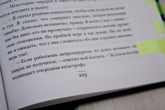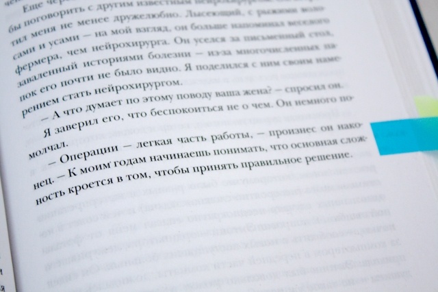 Причина одна - мне не хотелось читать научпоп о строении мозга, вдаваться в анатомические подробности. Мне, безусловно, это очень интересно, как и вся медицина в целом, но так хотелось прочитать истории из жизни, откровения врача, хотелось понять, что чувствует человек, от действий которого зависит здоровье и жизнь пациента.